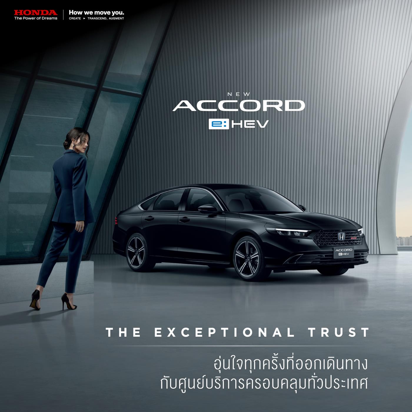รถยนต์ Honda Accord e:HEV 2025 (ฮอนด้า แอคคอร์ด อี:เอชอีวี) Full Hybrid สัมผัสความสมบูรณ์แบบของยนตรกรรมหรูสไตล์สปอร์ตที่มาพร้อมเทคโนโลยีขับเคลื่อนไฮบริดอันล้ำสมัย ขับสนุก ประหยัดน้ำมันเหนือชั้น และปลอดภัยรอบด้าน Honda Accord e:HEV ใหม่ คือการผสมผสานระหว่างสมรรถนะที่เร้าใจ ความสะดวกสบายระดับหรู และดีไซน์เหนือกาลเวลา สมรรถนะและเทคโนโลยีไฮบริดจาก Honda Accord ใหม่ ขุมพลัง e:HEV Full Hybrid ให้แรงบิดสูงสุดถึง 335 นิวตัน-เมตร อัตราประหยัดน้ำมันสูงสุด 23.3 กม./ลิตร ระบบขับเคลื่อนอัจฉริยะ ผสานการทำงานระหว่าง EV Drive – Hybrid Drive – Engine Drive อย่างลงตัว Drive Mode 4 รูปแบบ (Sport / Normal / Econ / Individual) รองรับทุกสไตล์การขับขี่ Honda Accord e:HEV ดีไซน์หรู สปอร์ตทุกมุมมอง กระจังหน้าใหม่ดีไซน์สปอร์ต พร้อมไฟหน้า LED Headlights & Sequential Turn Signals ล้ออัลลอยขนาด 18 นิ้ว Matte Black (รุ่น RS) หลังคาซันรูฟแบบ Panoramic Sunroof เพิ่มความหรูหราเหนือระดับ ตัวถังให้เลือก 4 สีพรีเมียม: Crystal Black Pearl Meteoroid Gray Metallic Lunar Silver Metallic Platinum White Pearl ความสะดวกสบายเหนือระดับ ห้องโดยสารกว้างขวาง เบาะหนังแท้หรูหรา เบาะคู่หน้าปรับไฟฟ้า 8 ทิศทาง พร้อมระบบ Memory Seat และฟังก์ชัน Easy Entry / Exit ระบบเสียง BOSE Premium Audio 12 ลำโพง ระบบฟอกอากาศ Plasmacluster เพื่อความสดชื่นในทุกการเดินทาง ความปลอดภัยล้ำสมัย Honda Accord e:HEV มาพร้อม Honda SENSING เทคโนโลยีความปลอดภัยอัจฉริยะ CMBS: ระบบเตือนการชนพร้อมเบรกอัตโนมัติ ACC with LSF: ระบบควบคุมความเร็วอัตโนมัติแบบแปรผัน LKAS: ระบบช่วยควบคุมรถให้อยู่ในช่องทาง RDM with LDW: ระบบเตือนและช่วยควบคุมเมื่อรถออกนอกเส้นทาง Adaptive Driving Beam (ADB) Blind Spot Information (BSI) และ Multi-view Camera System Honda Accord e:HEV โปรโมชั่นพิเศษ – ดอกเบี้ยต่ำ ดาวน์น้อย ผ่อนสบาย รุ่นย่อย ราคาใหม่ (บาท) ราคาเดิม (บาท) ส่วนต่าง Accord e:HEV E 1,479,000 1,529,000 -50,000 Accord e:HEV EL 1,599,000 1,669,000 -70,000 Accord e:HEV RS 1,729,000 1,799,000 -70,000 ทำไมราคาที่ถูกลงถึงเป็น “โปรโมชั่นที่ดีที่สุด” คุ้มค่ากว่าเดิม – ได้รถหรู ไฮบริดเทคโนโลยีใหม่ ในราคาที่ต่ำลง โปรโมชันเสริมจาก Honda First – ดาวน์เริ่มต้นเบา ๆ ดอกเบี้ยพิเศษ ผ่อนสบาย ฟรีประกันภัยชั้นหนึ่ง 1 ปี + รับประกันแบตเตอรี่ไฮบริด 10 ปี Honda Exclusive Care บริการหลังการขายระดับพรีเมียม สนใจ Honda Accord e:HEV (ฮอนด้า แอคคอร์ด อี:เอชอีวี) ติดต่อทดลองขับและข้อเสนอพิเศษที่ "ฮอนด้าเฟิร์ส" สำนักงานใหญ่รังสิตคลอง2 เลขที่ 848 ถนนเลียบคลองรังสิต ต.ประชาธิปัตย์ อ.ธัญบุรี ปทุมธานี 12130 โทร : 02-246-9355, 02-150-5777 Facebook fanpage สาขารังสิตคลอง 2 สาขารามคำแหง ใกล้แอร์พอร์ทลิงค์รามคำแหง เลขที่ 911ถนนรามคำแหง แขวงสวนหลวง เขตสวนหลวง กรุงเทพ 10250 โทร : 02-318-5111 Facebook fanpage สาขา รามคำแหง